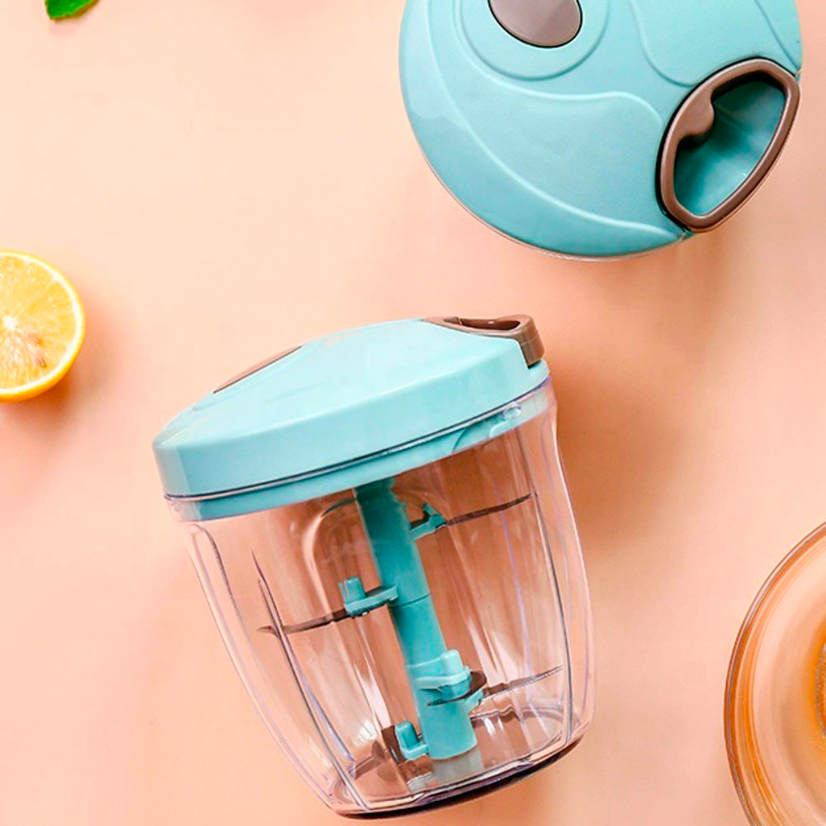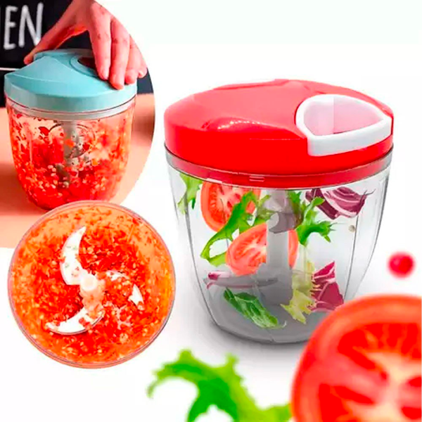 O Processador de Alimentos Triturador Manual 5 Lâminas 900ml foi projetado para facilitar sua vida, ideal para: cebola, alho, coentro, ovos, com suas 5 lâminas giratórias em aço inox, picam de forma fácil e rápida.